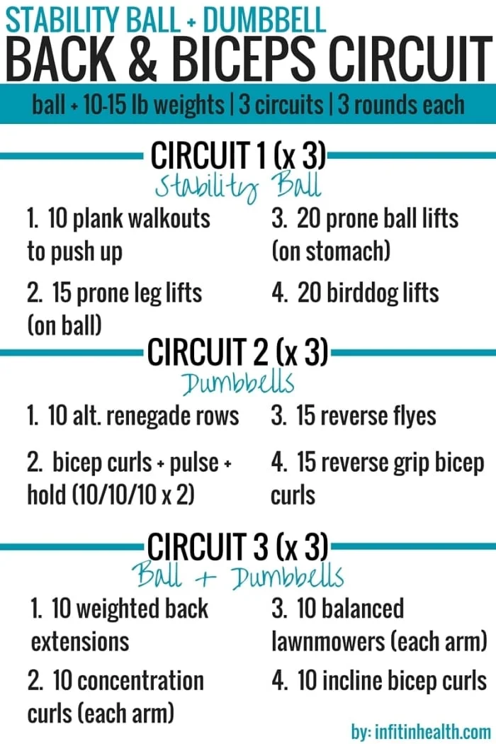 . Dumbbell Curls 3 sets of 10-15 reps. Face Pulls 3 sets of 10-15 reps. This back and biceps workout focuses on building strength and lean muscle tissue in the lats lower back rhomboids both heads of the biceps shoulders and forearms.
